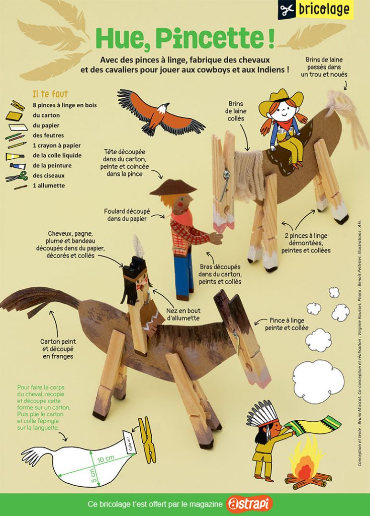 Avec des pinces à linge, fabrique des chevaux et des cavaliers pour jouer aux cowboys et aux indiens !